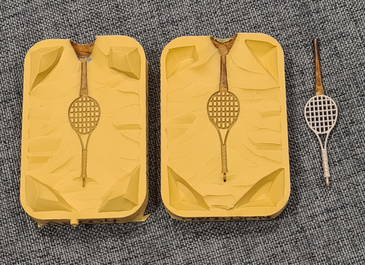 Video of wax mould being split in two to remove the wax of the tennis raquet